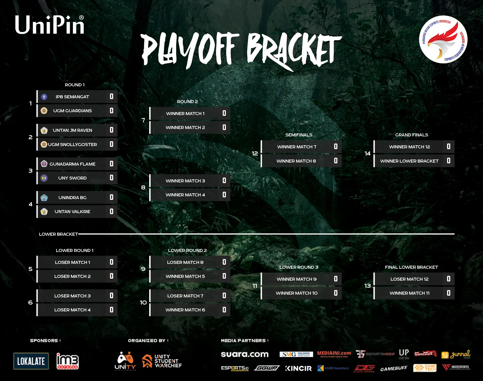 Kedelapan tim tersebut akan bermain di babak playoff dengan sistem upper dan lower bracket. Juara pertama akan ditentukan pada babak grand final yang akan mempertemukan pemenang pertandingan akhir upper bracket dan pemenang match terakhir lower bracket. Keseluruhan pertandingan akan dapat disaksikan secara langsung melalui kanal Youtube UniPin Gaming. Selain gelar juara, prizepool senilai Rp. 30.000.000 sudah menanti bagi para pemenang.