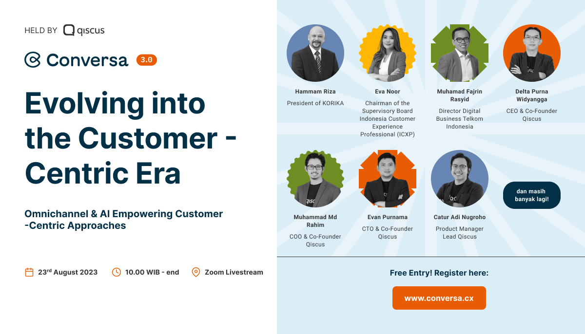 Setelah sukses mengadakan Conversa 2.0 dengan fokus pada keterlibatan pelanggan, Qiscus ingin mengajak pelaku bisnis di Indonesia untuk lebih memahami strategi yang berpusat pada pelanggan serta implementasi dari kolaborasi antara teknologi manusia dan AI yang disebut sebagai hybrid intelligence.