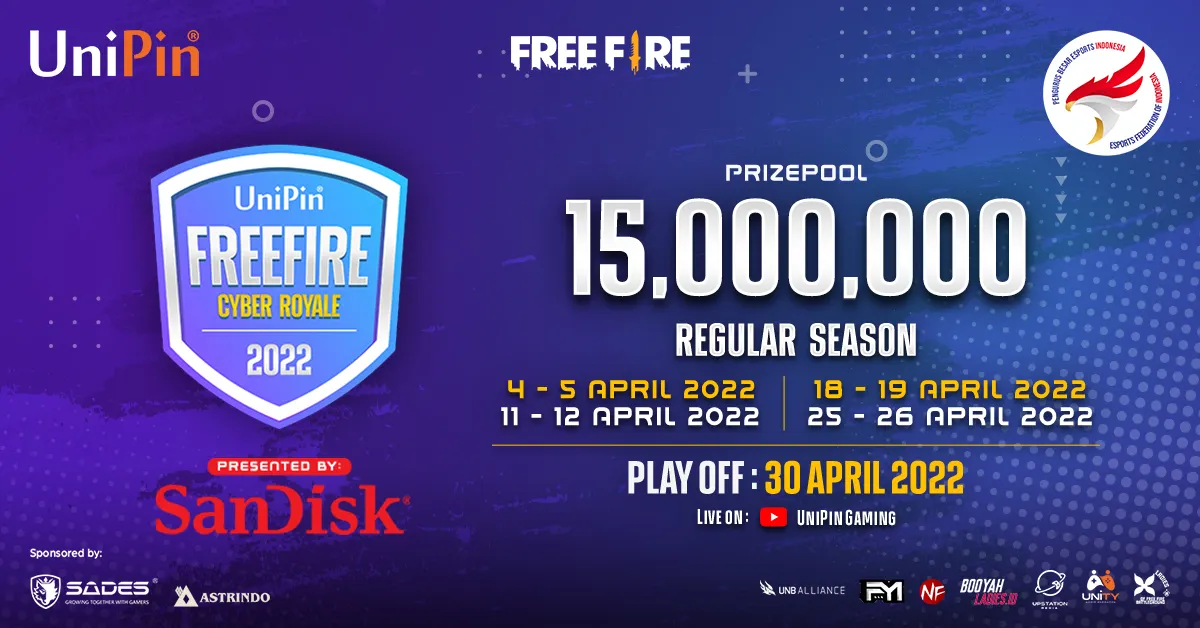 Rangkaian pertandingan Free Fire Cyber Royale 2022 akan dapat disaksikan secara langsung melalui akun YouTube UniPin. Detail serta informasi lengkap mengenai kompetisi dan turnamen UniPin dapat diakses melalui Instagram @unipinindonesia dan situs www.unipin.com