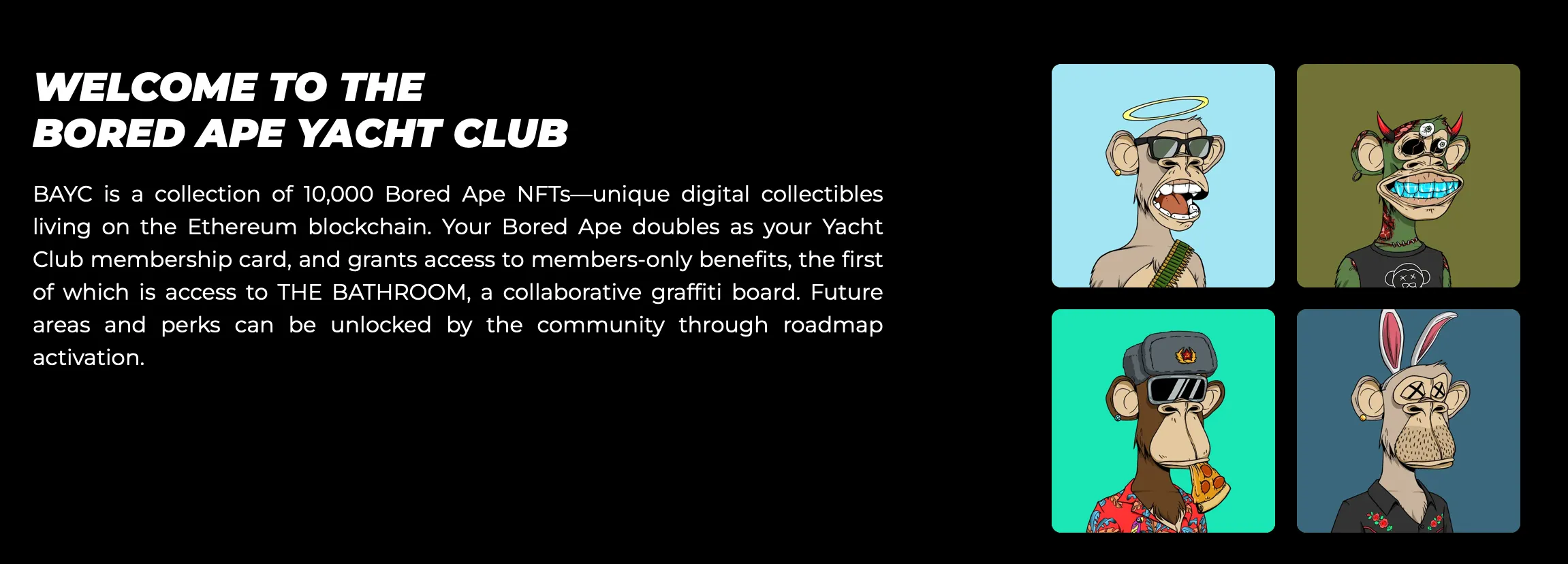 Pemilik NFT Bored Ape secara otomatis akan masuk ke dalam keanggotaan BAYC, mereka akan mendapatkan beberapa keuntungan, seperti mendapat server Discord eksklusif, merchandise eksklusif, mendapat NFT gratis dari Bored Ape Kennel Club dan Mutant Ape Yacht Club, dan akses undangan untuk acara khusus anggota.