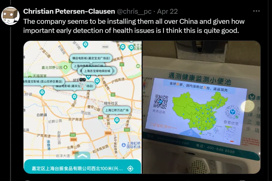 Kisah Christian Petersen-Clausen, seorang sutradara film yang tinggal di Shanghai, benar-benar menggambarkan betapa serunya urinal pintar ini. Dia baru saja menceritakan pengalaman pribadinya lewat serangkaian cuitan di media sosial. Awalnya, dia agak skeptis, tapi setelah mencoba, dia langsung kagum dengan kemudahan dan kecepatannya.