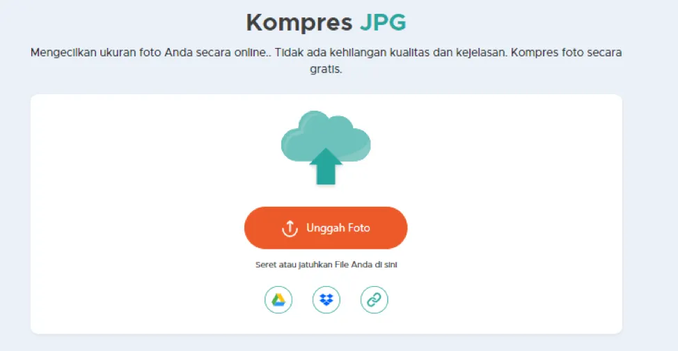 kompresjpg.com ini memungkinkan Anda untuk kompres foto tanpa mempengaruhi kualitasnya. Anda dapat mengunggah gambar dengan mudah, menyesuaikan pengaturan kompresi, dan segera mengunduh file terkompresi dengan alat kompres jpg gratis ini. Ini adalah opsi ramah pengguna yang cocok untuk pengguna pemula dan berpengalaman.