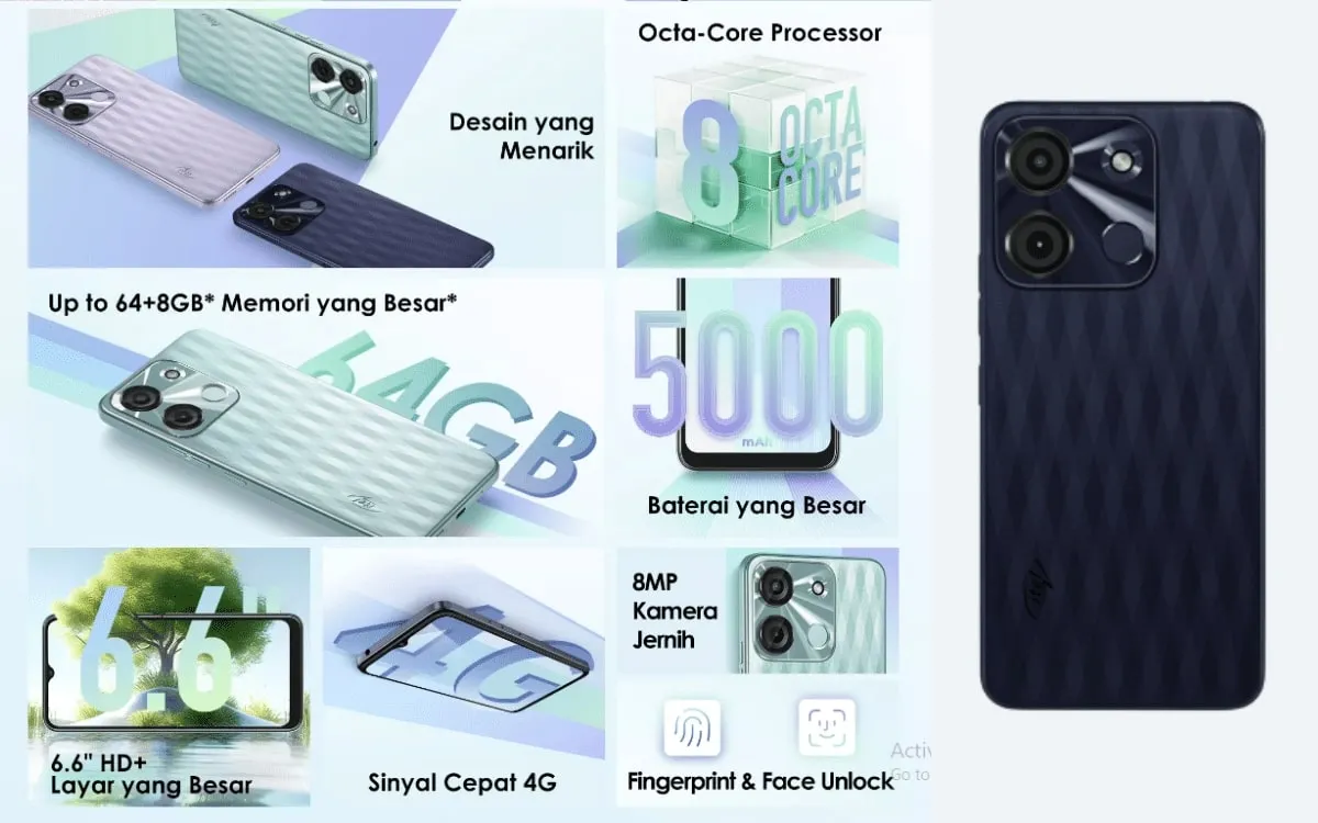 Spesifikasi Itel A60S di Indonesia cukup kompetitif dengan ponsel murah lainnya yang mungkin sedikit lebih mahal.