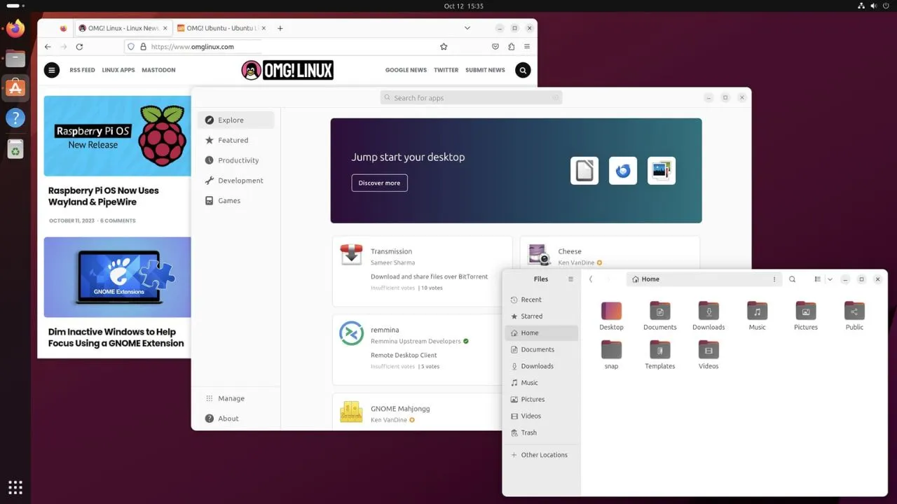 Selain itu, di GNOME 45, terdapat peningkatan pada tampilan jendela, penampilan web browser yang lebih tajam, dan dua aplikasi baru yang menggunakan teknologi Flutter. Selain itu, Ubuntu 23.10 juga menghadirkan perubahan besar dalam jumlah perangkat lunak yang diinstal secara default. Beberapa aplikasi seperti LibreOffice, Thunderbird, Shotwell, dan Rhythmbox tidak lagi diinstal secara default, namun masih tersedia di ISO dan sesi live Ubuntu.