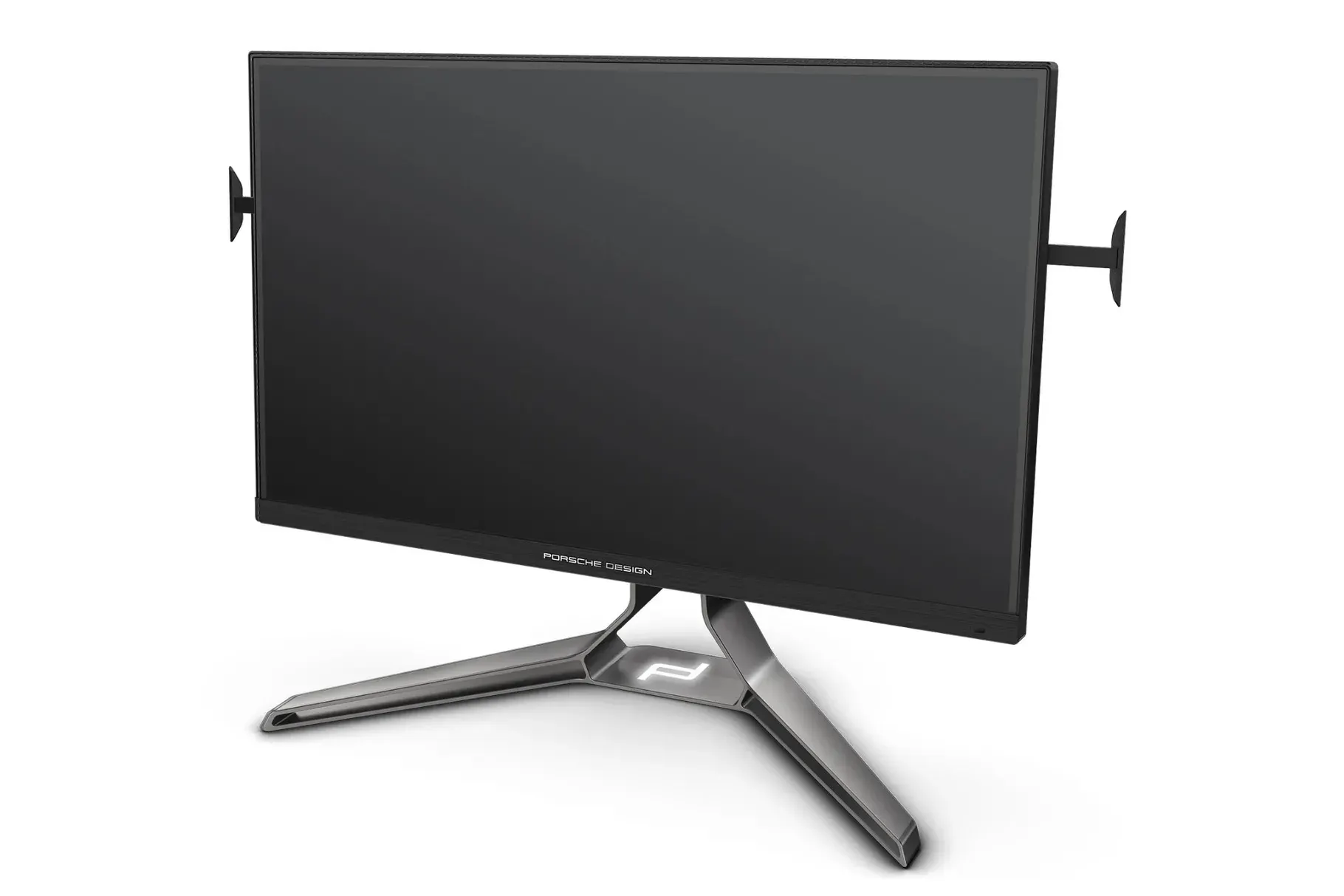 Di luar panel 32 inci tanpa bingkai, yang memiliki lampu latar Mini LED untuk kontras dan kontrol cahaya yang lebih baik, dudukan aluminium yang minimalis dan tampak kokoh meniru gaya roda kemudi Porsche.