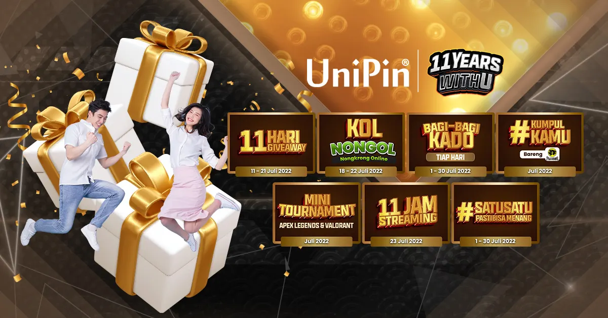 Jakarta, 12 Juli 2022 – UniPin, penyedia layanan hiburan digital terkemuka di Indonesia memasuki usianya yang kesebelas di tahun 2022 ini. Untuk merayakannya, UniPin ingin berbagi kebahagiaan sebelas tahun perjalanannya melalui rangkaian acara ulang tahun bertajuk #11YearsWithU. Rangkaian acara yang berlangsung selama Juni dan Juli 2022 ini telah dibuka dengan webinar “Masa Depan Industri Esports: Esportstainment” yang telah berlangsung pada Rabu (29/6).