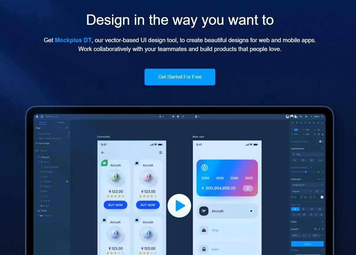 Apakah kamu mencari alat desain UI gratis selamanya yang berfungsi di browser? Mockplus adalah pilihan tepat bagi desainer UI yang membutuhkan desain kolaboratif.