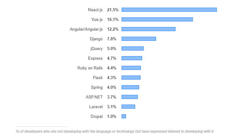 Presentase penggunaan front-end framework tahun 2020. Foto: Stackoverflow