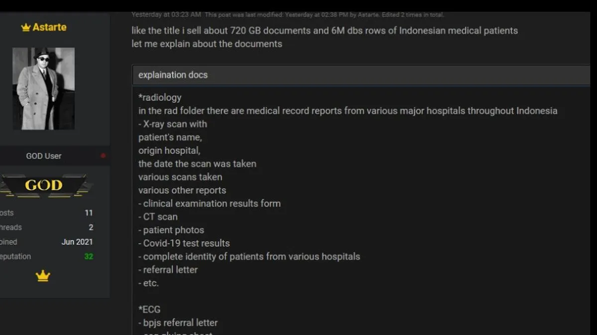 data kembali terjadi di awal tahun 2022, kali ini terjadi pada data pasien kesehatan Indonesia milik