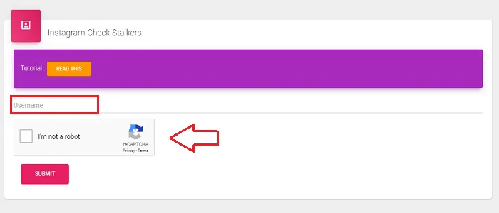 Langkah selanjutnya ialah mengisi kotak yang kosong dengan username Instagram kamu, lalu klik kotak captcha yang bertuliskan "I'm not a robot", lalu pilih submit.