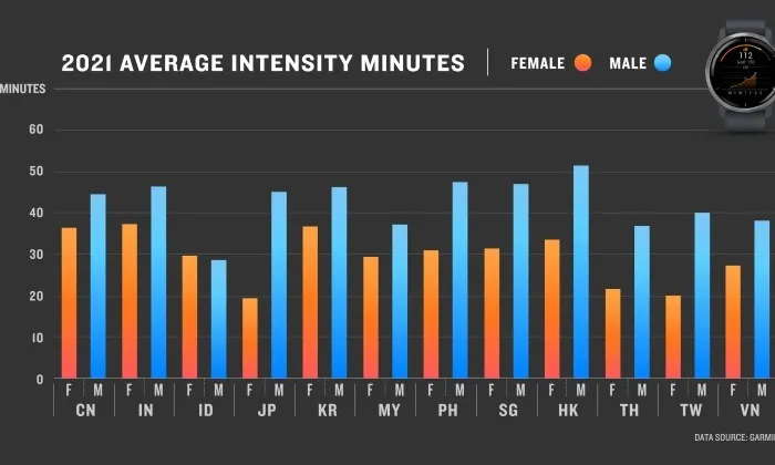 Hal ini dicatat oleh Garmin lewat Intensitas Menit mingguan pengguna Asia pada tahun 2021.