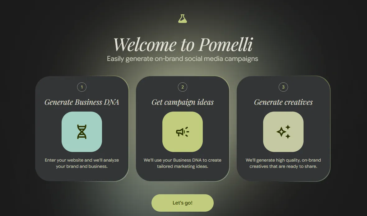 Setelah profil "Business DNA" terbentuk, tahap kedua adalah pengembangan ide kampanye pemasaran. Pomelli akan menyarankan konsep yang paling relevan dengan profil bisnis tersebut.