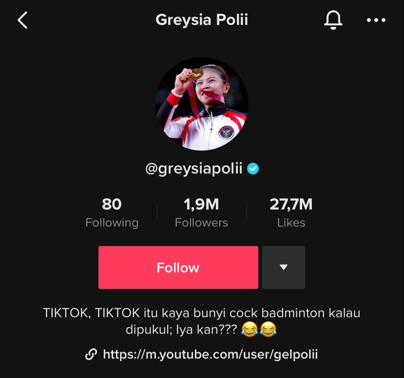 Setelah menyelidiki lebih dalam, ternyata sosok atlet dengan followers terbanyak di TikTok tidak lain adalah sosok atlet badminton yang pernah mengharumkan nama Indonesia di kancah dunia, yaitu Greysia Polii.