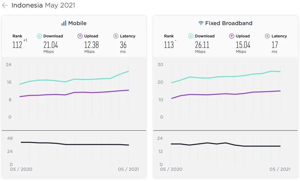 Mbps, sekarang meningkat menjadi 21,04 Mbps. Ini membuat RI naik satu peringkat