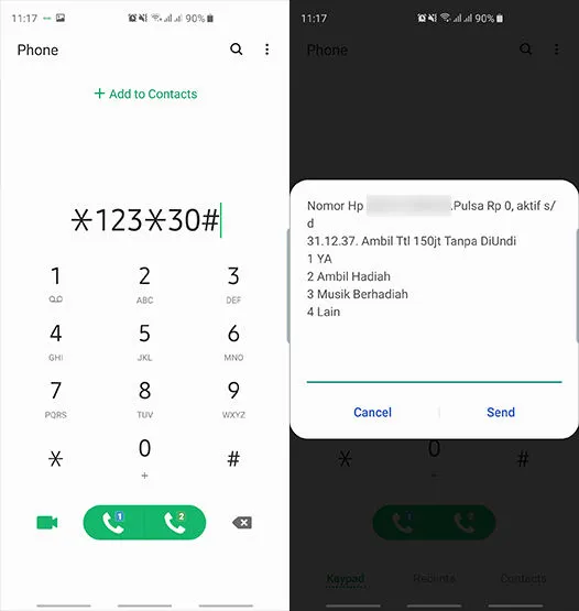 - Tulis kode *123*30#, setelah itu pilih opsi panggilan.