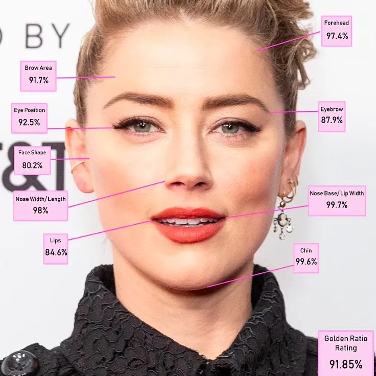 Berdasarkan hasil penelitian dari Dr Julian De Silva mengungkap bahwa Amber Heard memiliki wajah paling sempurna dengan mencetak nilai 91.85%. Analisis yang dilakukan Dr Julian melalui teknologi pemindai wajah dengan memindai 12 poin kunci struktur wajah Amber Heard.