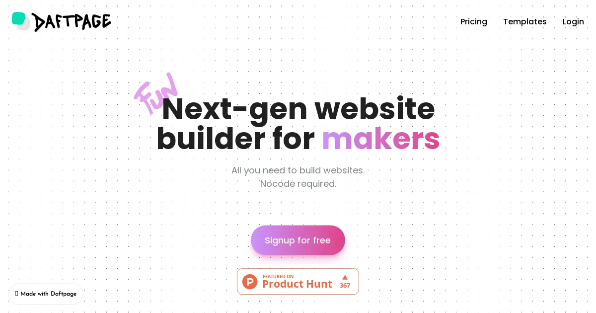 Daftpage adalah sebuah situs yang mudah digunakan. Untuk membuat desain situs web di sini, kamu bisa melakukan banyak kegiatan agar tampilan situs web kamu menjadi menarik. Kamu dapat menggunakan beberapa template Daftpage untuk memulai atau membuat situs web seperti yang kamu inginkan. Cara menggunakannya, kami bisa menekan "enter" atau ikon "tambah" untuk menambahkan blok. Blok ini dapat berupa judul tulisan, daftar tugas, media, tombol tambahan, atau cuitan tertentu. Semua blok tersebut dapat dipindahkan, diubah, dan diatur sedemikian rupa sesuai keinginan kamu. Situs ini juga menyediakan pustaka aset untuk menemukan dan menyematkan GIF dan juga ikon unik dari situs web eksternal.