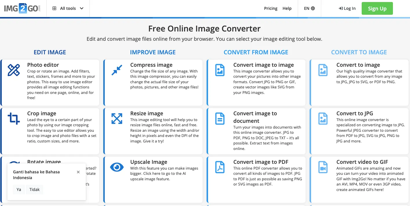 Langkah pertama adalah menggunakan website situs img2go.com.