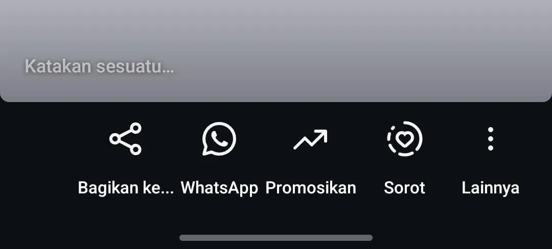 Setelah terunggah, fitur berbagi ke WhatsApp akan muncul dibagian bawah story Instagram. Untuk membagikannya, kamu hanya perlu klik fitur WhatsApp dan story Instagram kamu akan terunggah di status WhatsApp.