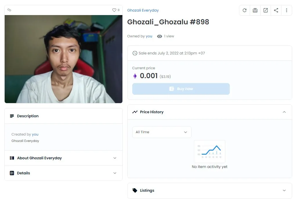 Tidak hanya artis terkemuka, NFT bisa dibuat oleh siapa saja, salah satunya Ghozali, yang menjual foto selfie di Open Sea.