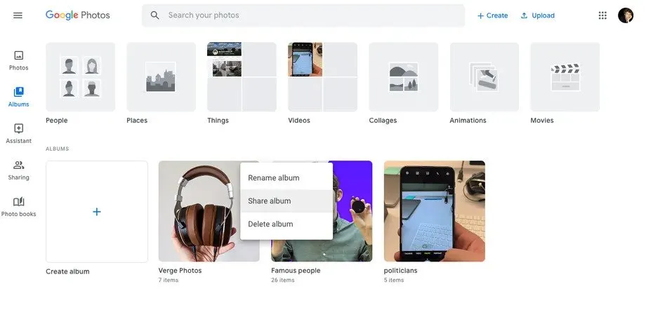 1. Klik "Album" di menu sebelah kiri Google.