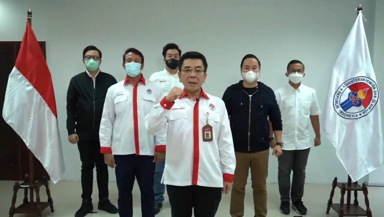 Deputi IV Bidang Peningkatan Prestasi Olahraga Kemenpora Chandra Bhakti (depan) yang didampingi Pengurus PB Esports Indonesia (PBESI) saat pembukaan Piala Pelajar se Jabodetabek, Senin (09/11/2020).