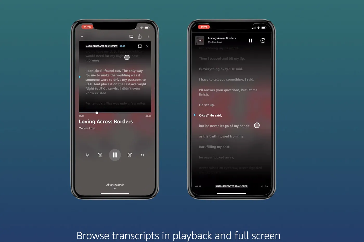 Amazon berencana untuk meluncurkan transkrip yang dibuat secara otomatis dan disinkronkan di iOS dan Android di AS mulai hari ini, yang berarti transkrip akan cocok dengan audio yang kita dengar, dan kita dapat beralih untuk melompat ke bagian audio tertentu.