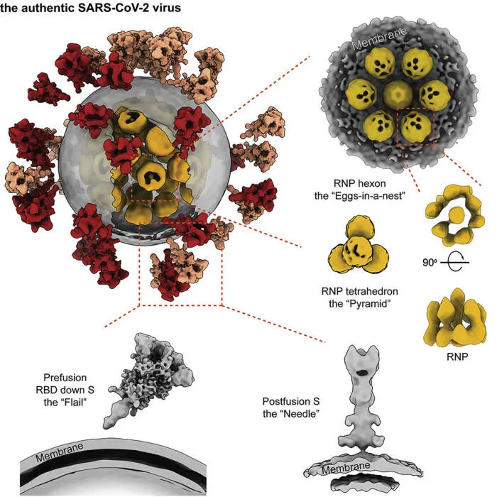 Pada gambar tersebut dapat terlihat jika COVID-19 hadir dalam wujud dikelilingi oleh banyak ‘flail’ dan ‘needle’ pada inti virus tersebut. Lalu, inti dari virus Corona tersebut terdiri dari kumpulan ‘telur’ yang dibungkus oleh sebuah membran. Namun, membran tersebut memiliki celah berupa sobekan.