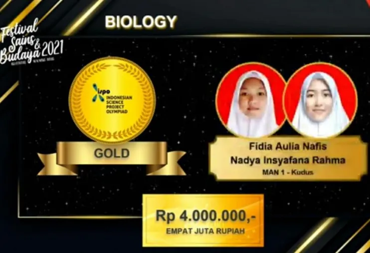 Adalah Nadya Insyafana Rahma dan Fidia Aulia, kedua siswa kelas XII IPA MAN 1 Kudus. Mereka melakukan riset berjudul AMBON (Antimicrobial Agents By Ozone and Silver Nanoparticles).