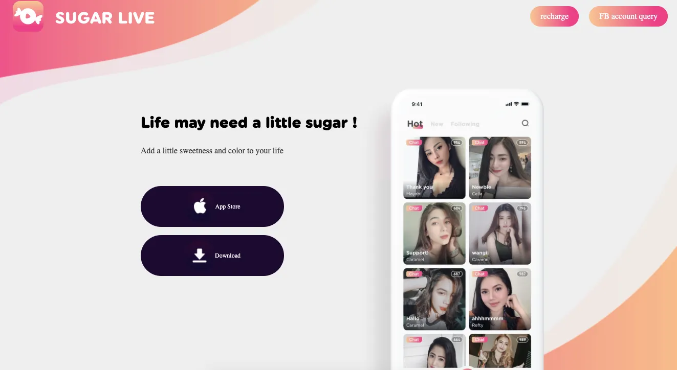 Sugar Live merupakan platform streaming (siaran langsung) asal Indonesia. Melalui Sugar Live, kamu bisa menyaksikan tayangan streaming dari berbagai host. Tak hanya sekadar menyaksikan streaming, tapi juga bisa berinteraksi secara langsung. Dikutip dari website resmi Sugar Live, platform Sugar Live dapat dipakai oleh pengguna untuk melihat gaya hidup dari berbagai selebritis melalui siaran langsung. Selain itu, Sugar Live menyediakan hiburan bagi para penggunanya.