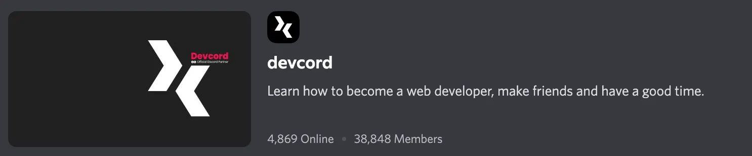 Server Discord pertama saya rekomendasikan adalah Devcord, sebuah komunitas diperuntukan untuk para web developer. Di dalam server Devcord, tedapat berbagai macam kategori dan channel yang sangat bermanfaat bagi developer.