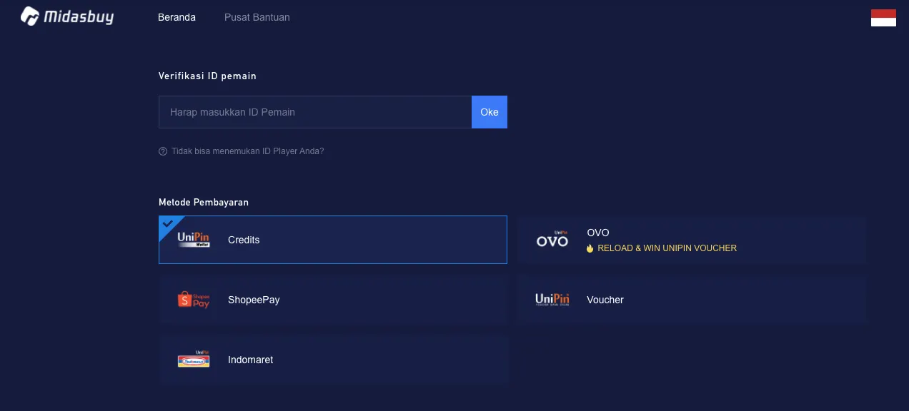 - Top Up minimal 50.000 Rupiah dalam satu transaksi pembelian PUBGM UC di website Midasbuy dan gunakan OVO sebagai payment channel.