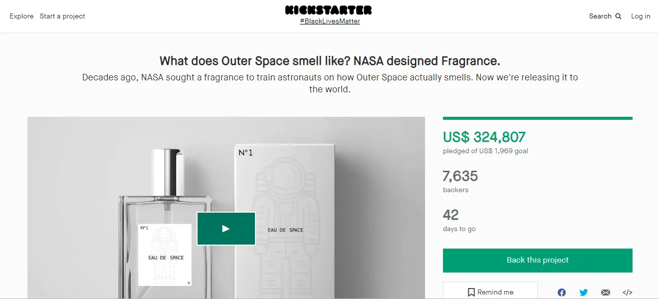 NASA telah menggalang dana lewat Kickstarter dengan harapan mendapatkan total 1.969 dolar AS atau 28,2 juta rupiah. Hingga saat ini, sudah ada 2.553 orang yang menyumbangkan dana ke parfum luar angkasa ini. Jumlah dana yang terkumpul bahkan sudah melebihi target, yakni 91 ribu dolar AS atau sekitar Rp1,3 miliar.