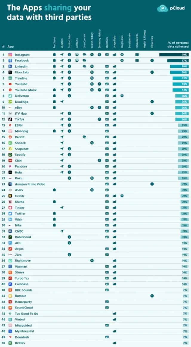 Sebagai informasi tambahan, berikut daftar aplikasi yang mengumpulkan paling banyak data untuk keuntungan mereka sendiri.