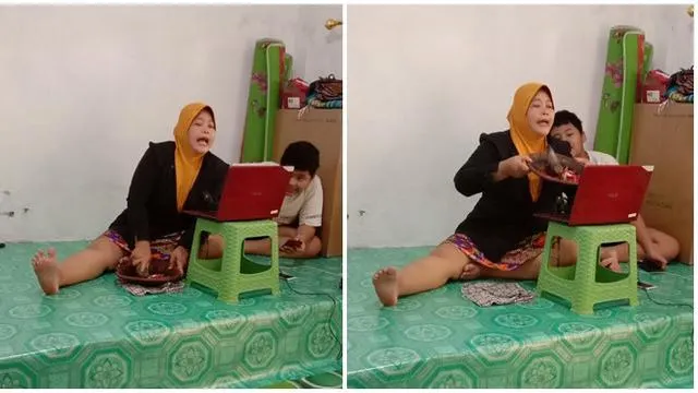 1. Ibu-ibu multitasking ini ditemani anaknya ikut meeting online sambil ngulek sambal!