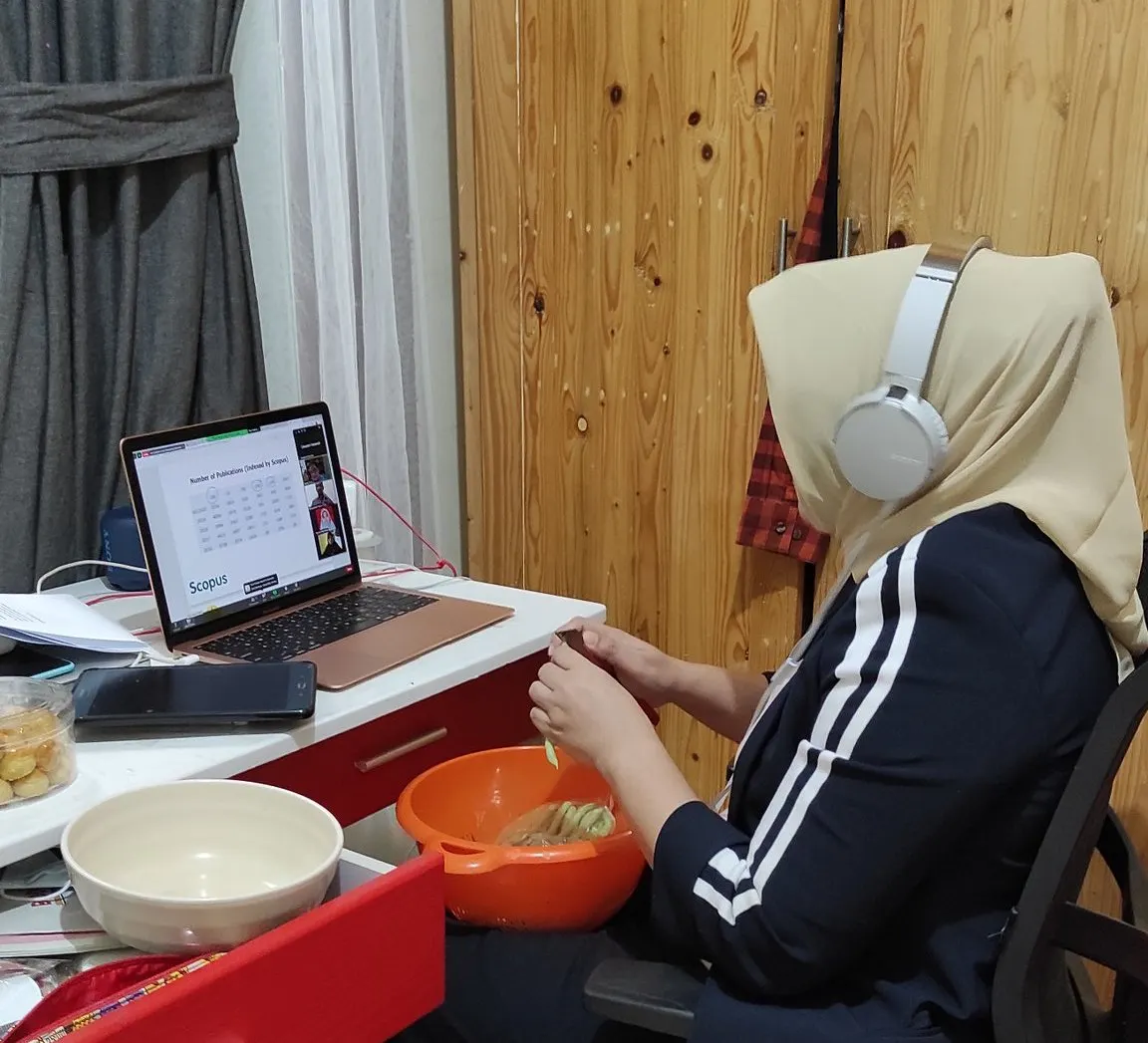 2. Tak kalah multitasking, ibu ini ikut meeting online sambil potong-potong buncis!