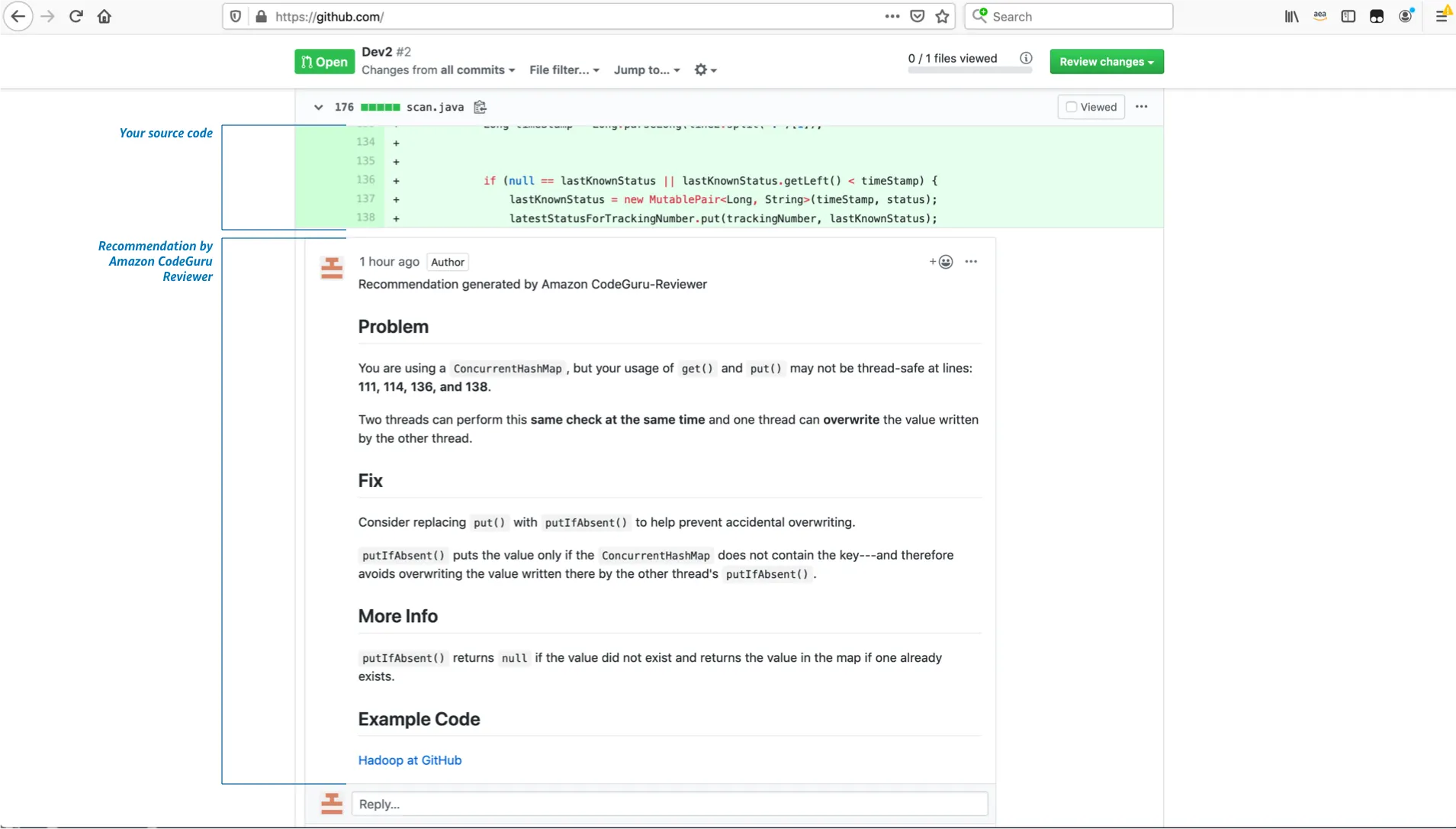 CodeGuru Reviewer merupakan model machine learning yang telah dilatih dengan lebih dari 10.000 projek open source pada GitHub, termasuk kode milik Amazon sendiri.
