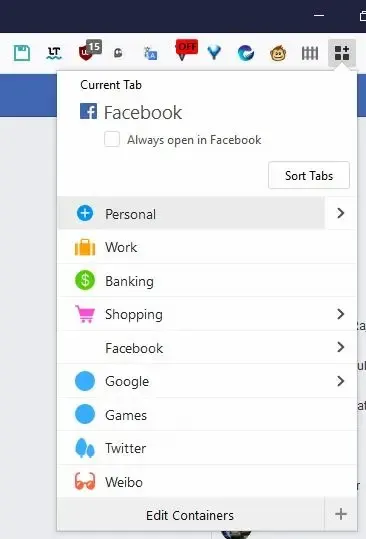 Add-ons Multi-Account Containers menambahkan opsi konfigurasi pada fitur Containers