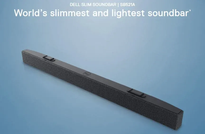 Dell Slim Soundbar hadir dengan nomor seri SB521A. Perangkat ini memiliki sistem magnet built-in yang memungkinkan untuk dipasang langsung ke bagian bawah monitor. Dell Slim Soundbar SB521A memiliki dimensi 298mm x 18mm x 24mm (11,73inchi x 0,71inchi x 0,95inchi) dengan bobot 114g. Atas pertimbangan ukuran dimensi tersebut, pihak Dell mengklaim bahwa Dell Slim Soundbar SB521A adalah produk soundbar paling slim di dunia.