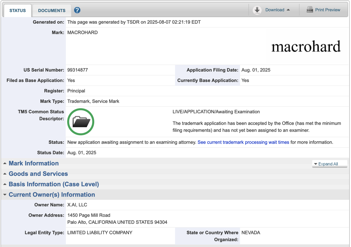Awalnya, “MacroHard” hanyalah candaan di akun X (sebelumnya Twitter) milik Elon Musk. Namun, pada 1 Agustus 2025, dokumen resmi di United States Patent and Trademark Office (USPTO) mencatat pendaftaran merek tersebut untuk fokus pada sistem AI berbasis multi-agen.
