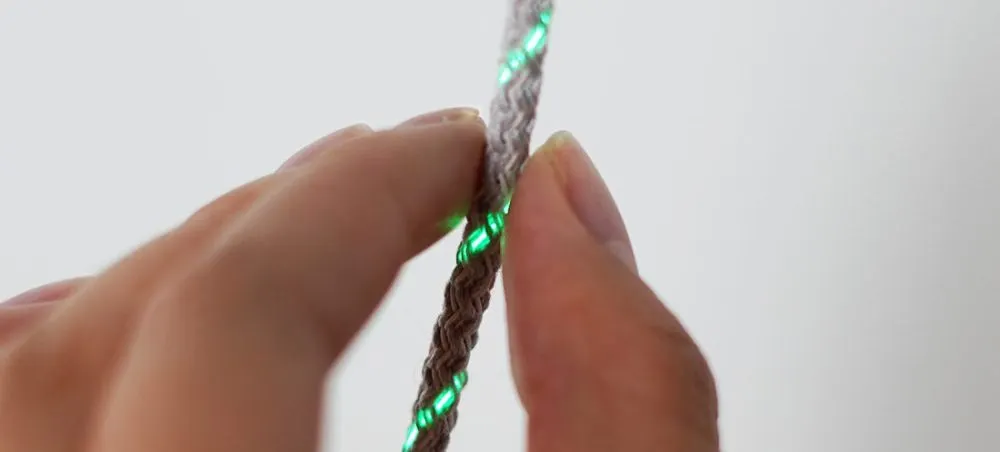 Dalam kabel headphone tersebut terdapat kawat kain yang dibalut serat optik menyala dengan warna yang berbeda-beda untuk menujukkan gestur apa yang sudah dilakukan pengguna.