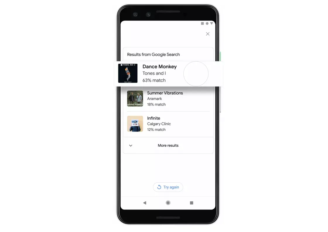 Kemudian, Google akan menampilkan hasil berdasarkan kemungkinan kecocokan antara senandung dengan database daftar lagunya. Setelah itu, pengguna dapat mengetuk hasil untuk mendengarkannya, mirip seperti pada penelusuran Google biasa.