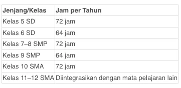 Pemerintah menetapkan jumlah jam pelajaran per tahun sebagai berikut: