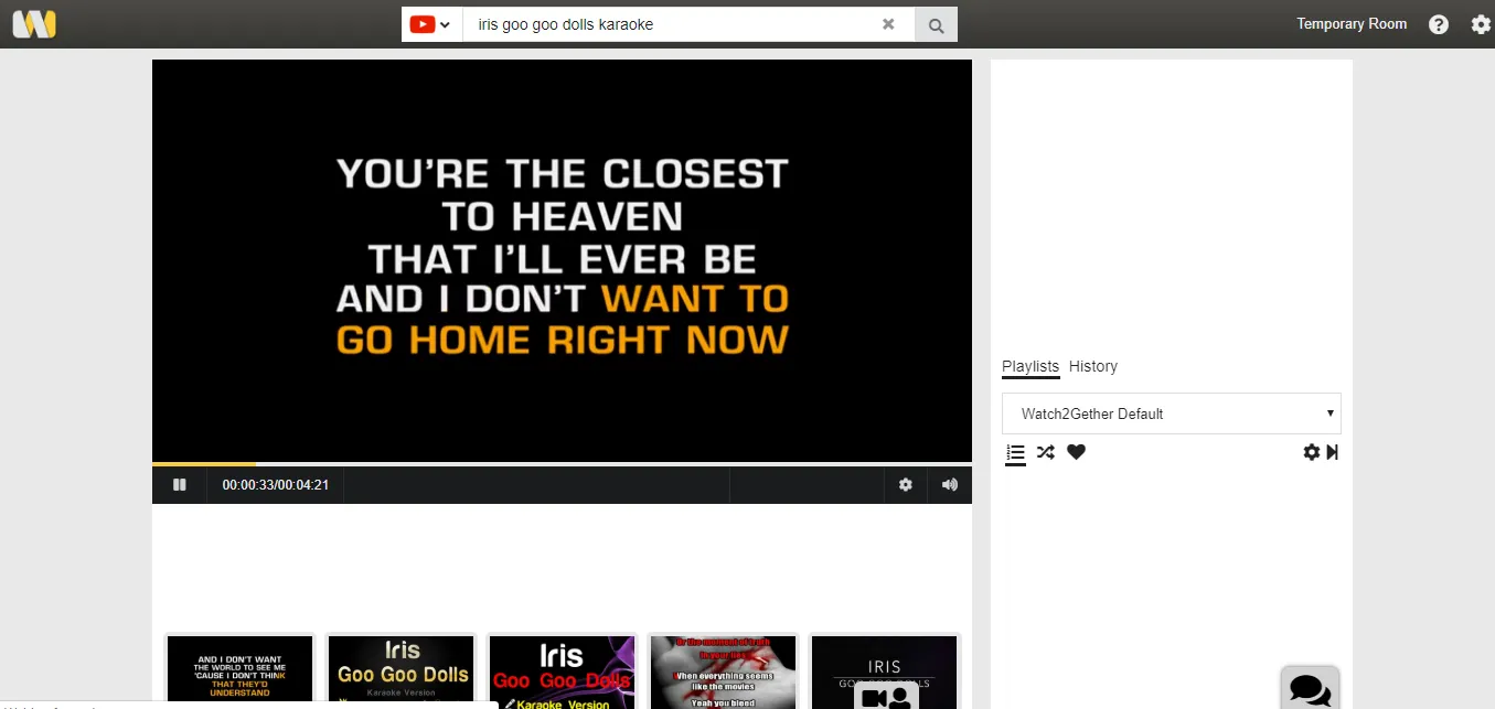 Untuk mencari video yang bisa digunakan untuk karaoke, kalian bisa menambahkan kata kunci "karaoke" pada lagu yang dicari. Misalnya "Iris Goo Goo Dolls karaoke".