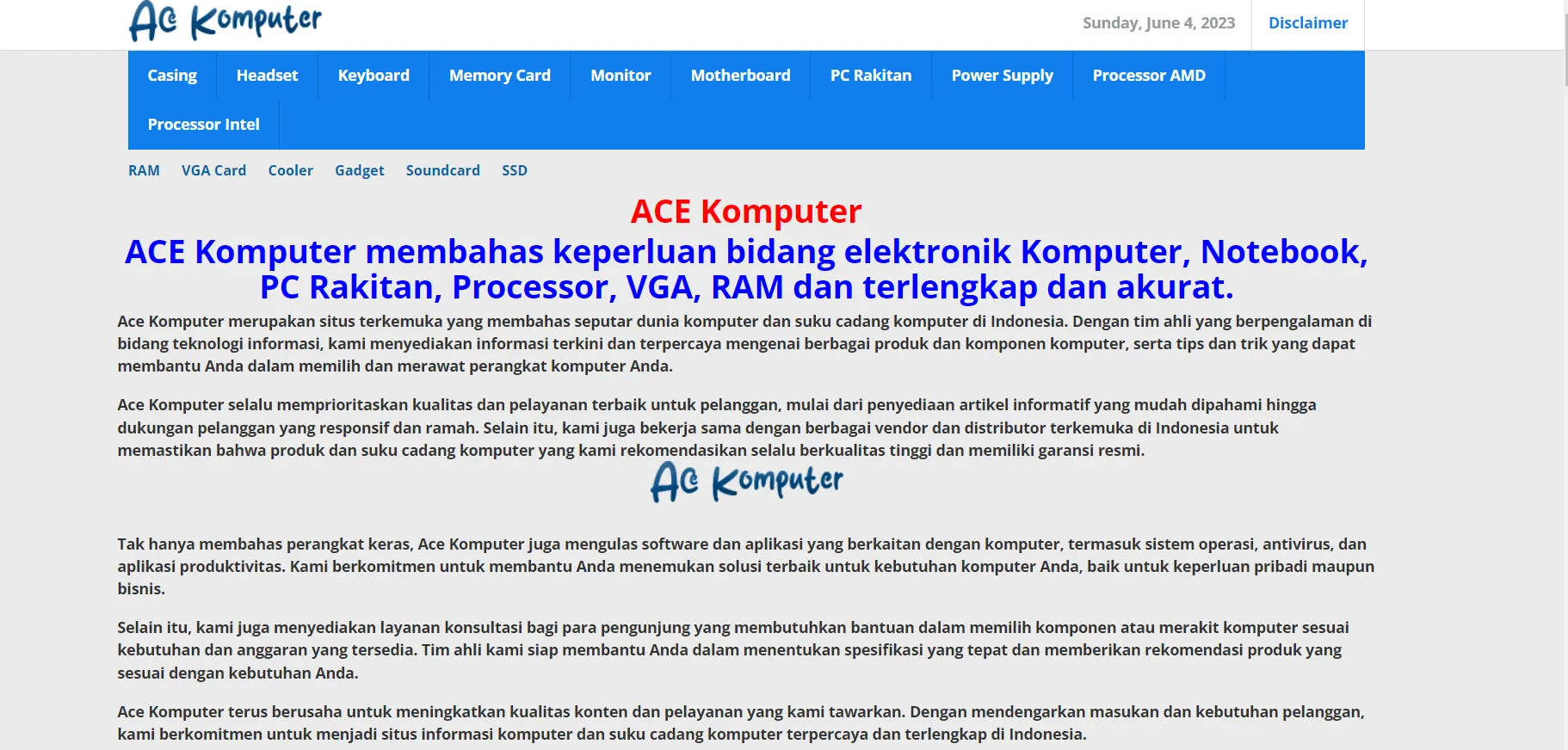 Jadi, jika Anda ingin menjelajahi inovasi terkini di dunia komputer, Ace Komputer adalah tempat yang harus Anda kunjungi. Situs ini tidak hanya menawarkan produk terbaru, tetapi juga memberikan informasi terkini dan terpercaya mengenai berbagai aspek komputer dan suku cadang komputer.