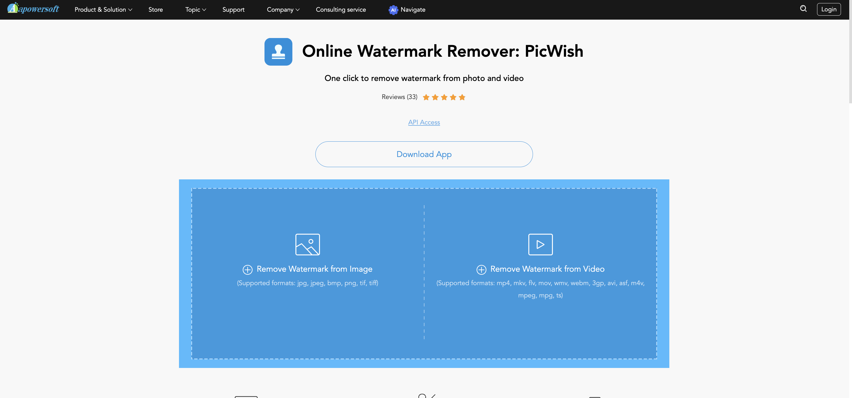 - Kemudian klik "Product & Solution" dan pada bagian menu "Online", pilih menu "Watermark Remover".