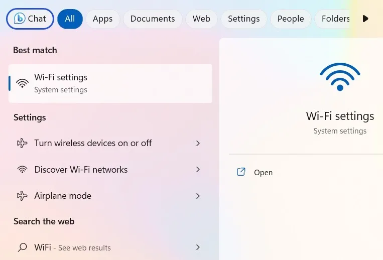 1. Buka Pengaturan dalam komputer anda lalu pilih Jaringan dan Internet dan pilih Wifi. Selain itu, kamu juga bisa langsung membuuka Pengaturan wifi langsung dari search bar dalam pengaturan atau system tray.