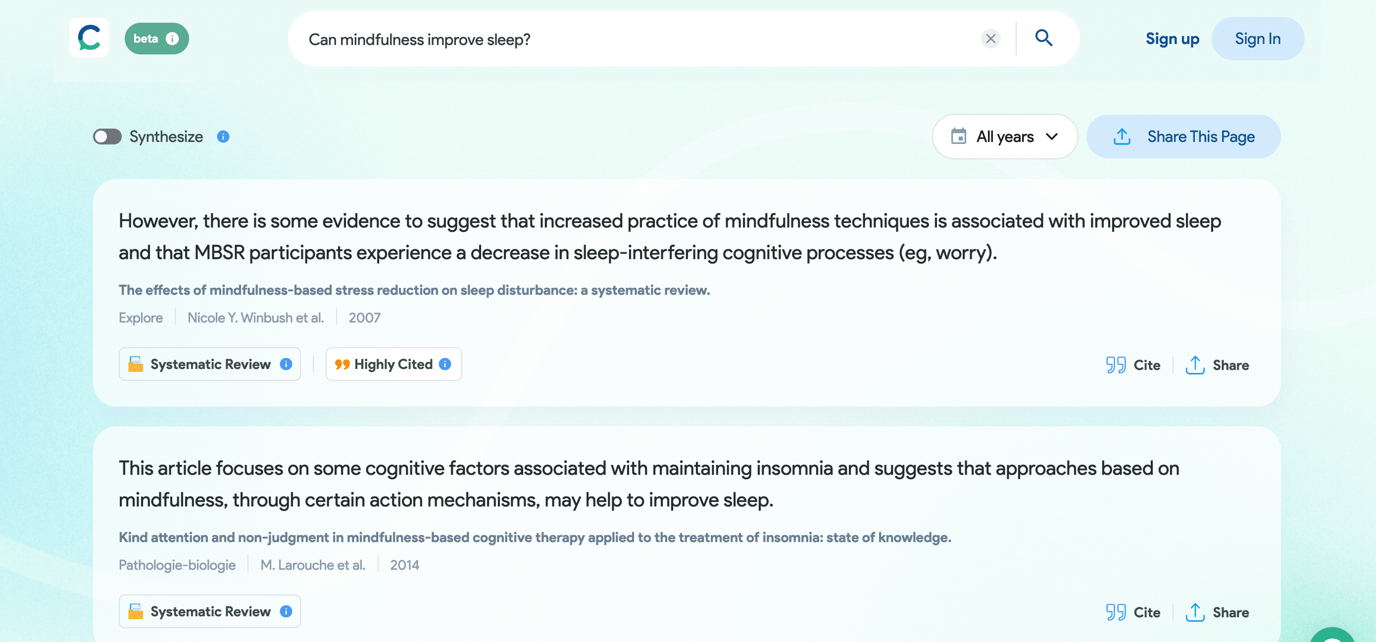Lebih lanjut, algoritma AI-nya dapat membantu kamu untuk mengidentifikasi keterkaitan dan hubungan yang sebelumnya tidak diketahui antara topik penelitian untuk memberikan hasil pencarian yang lebih relevan. Alat ini juga menyarankan artikel terkait berdasarkan penelitian yang telah kamu simpan sebelumnya. Selain itu, alat ini dapat secara otomatis membuat ringkasan satu kalimat dari setiap artikel untuk membantu memutuskan artikel mana yang perlu dibaca secara mendalam sehingga kamu dapat fokus pada hal-hal yang paling penting.