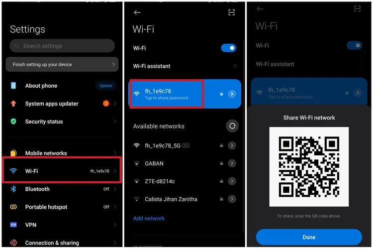 Pada HP dengan versi ini, melihat password WiFi akan jauh lebih mudah karena terdapat fitur bawaan yang memungkinkan untuk membagikan jaringan dalam bentuk kode QR. Berikut langkah-langkahnya: