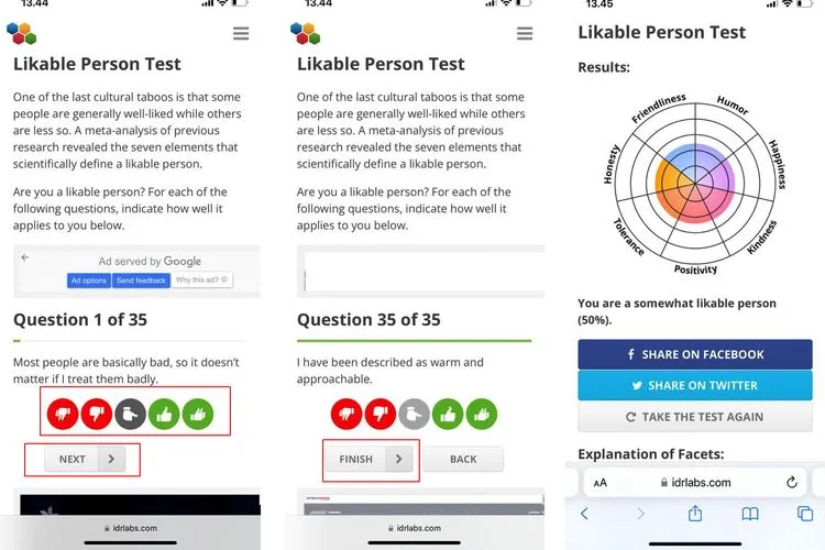 Hasil tes seberapa menyenangkan diri Anda tersebut bisa langsung dibagikan ke Facebook atau Twitter dengan mengetuk opsi “Share”.